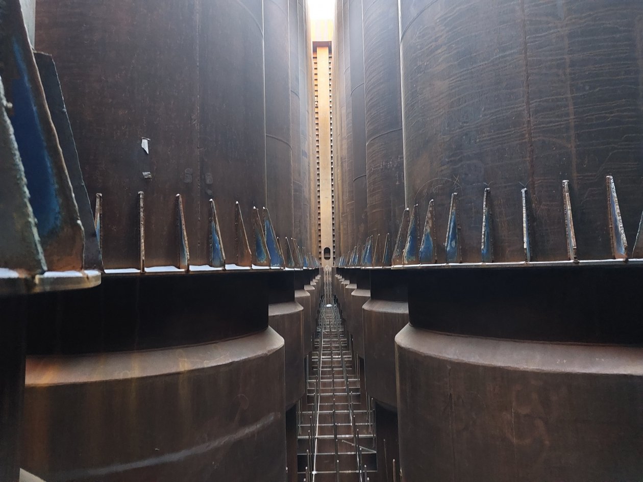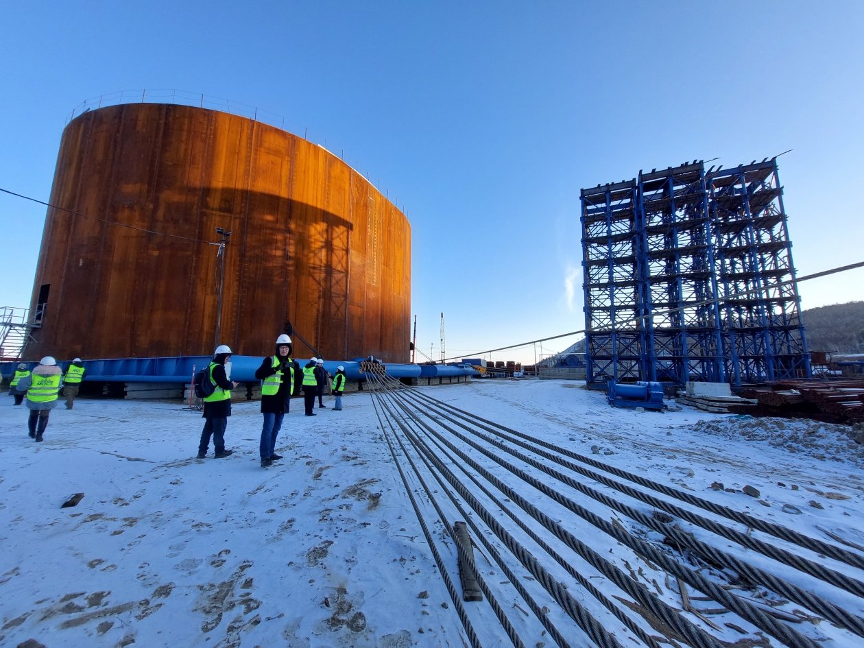 Напомним, технология наплавных коффердамов используется в России впервые. Это масштабные стальные конструкции высотой свыше 17 метров и диаметром 36-46 метров, создающие сухие рабочие зоны в русле реки. На тюменском заводе "Стальмост" были изготовлены и доставлены на площадку в Якутск 4560 тонн металлоконструкций.