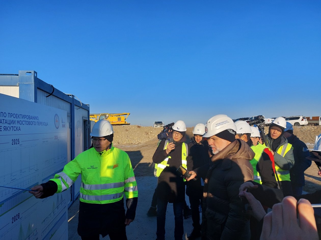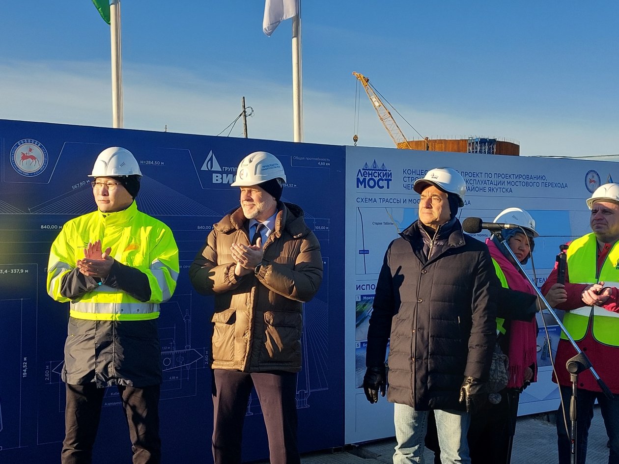 "Реализация мечты жителей Якутии, строительство моста через Лену, становится реальной. Мы видим, что на стройплощадках двух берегов Лены идет большой объем работы. Сегодня мы стоим у первого законченного элемента моста — опора №4, здесь при возведении установили 18 буронабивных свай и залили 350 кубов цемента, но это опора не большая. На следующий год планируется спуск двух опор в русло реки, это один из самых сложных этапов в строительстве моста. Благодаря вниманию со стороны федеральных структур, активной позиции президента страны и главы Якутии — все работы идут по плану".