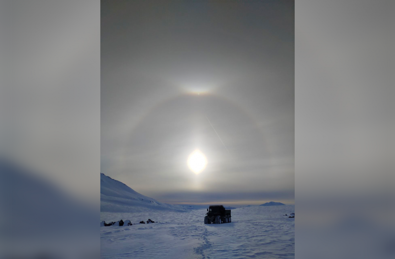Представьте себе: вы на вершине вулкана, а над головой — не просто солнце, а сияющее кольцо, словно нимб, окружающий его! В Южно-Камчатском природном парке запечатлели удивительное природное явление — гало!