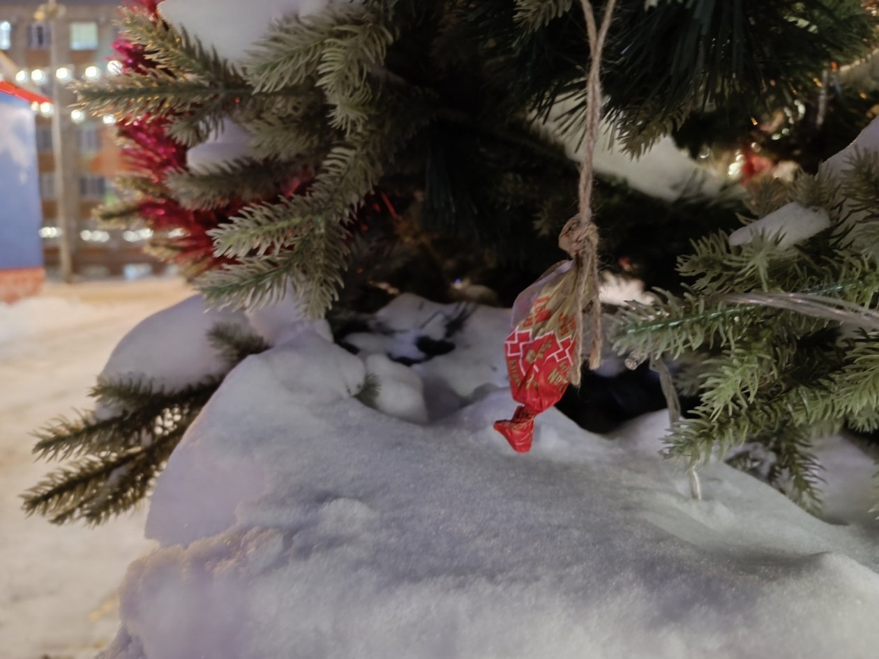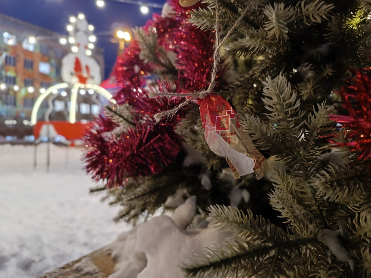 Неизвестные попробовали на зуб украшения праздничного дерева от местного бизнеса