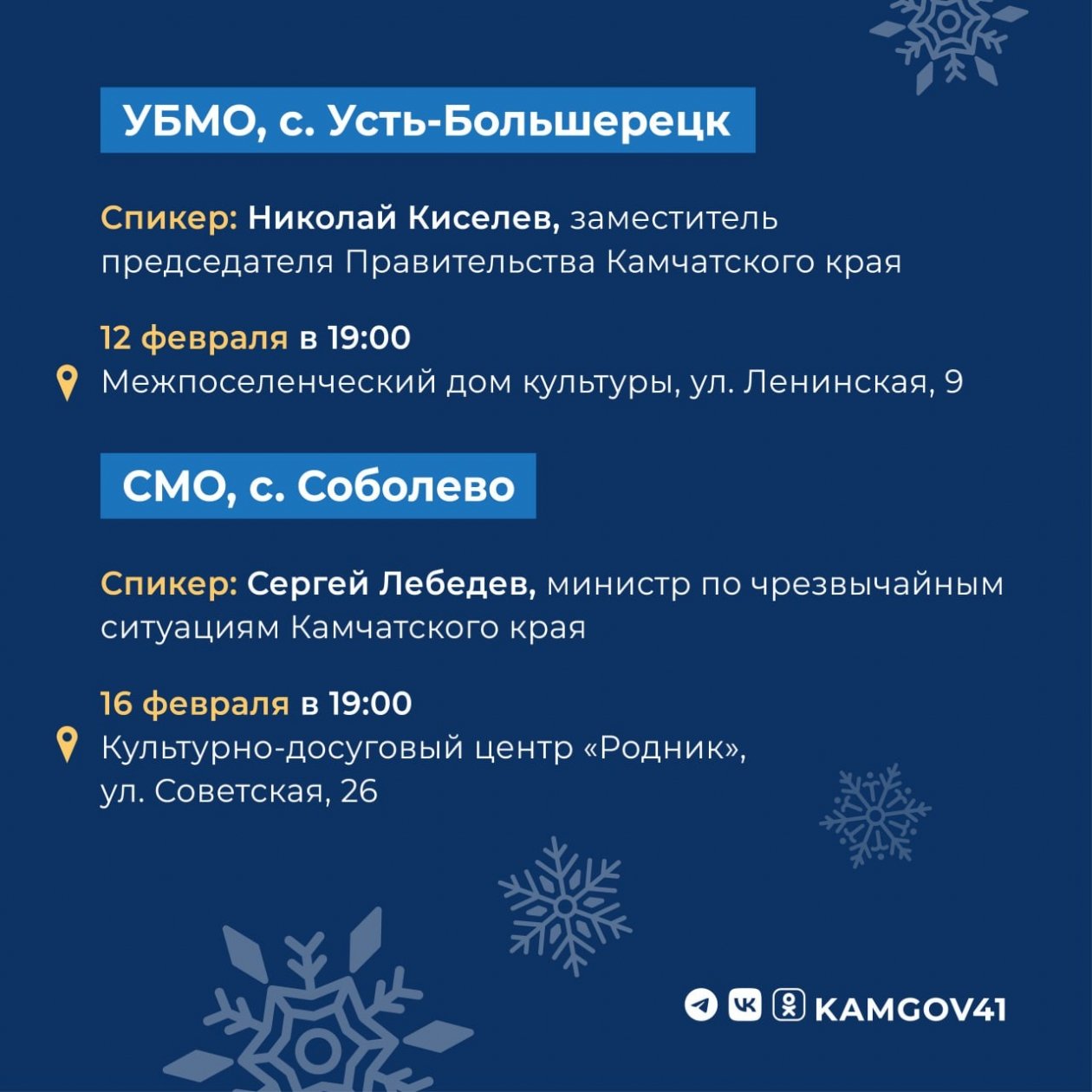 Представители краевых министерств и ведомств встретятся с населением Петропавловска-Камчатского, Елизова, Вилючинска и населенных пунктов Авачинской агломерации.