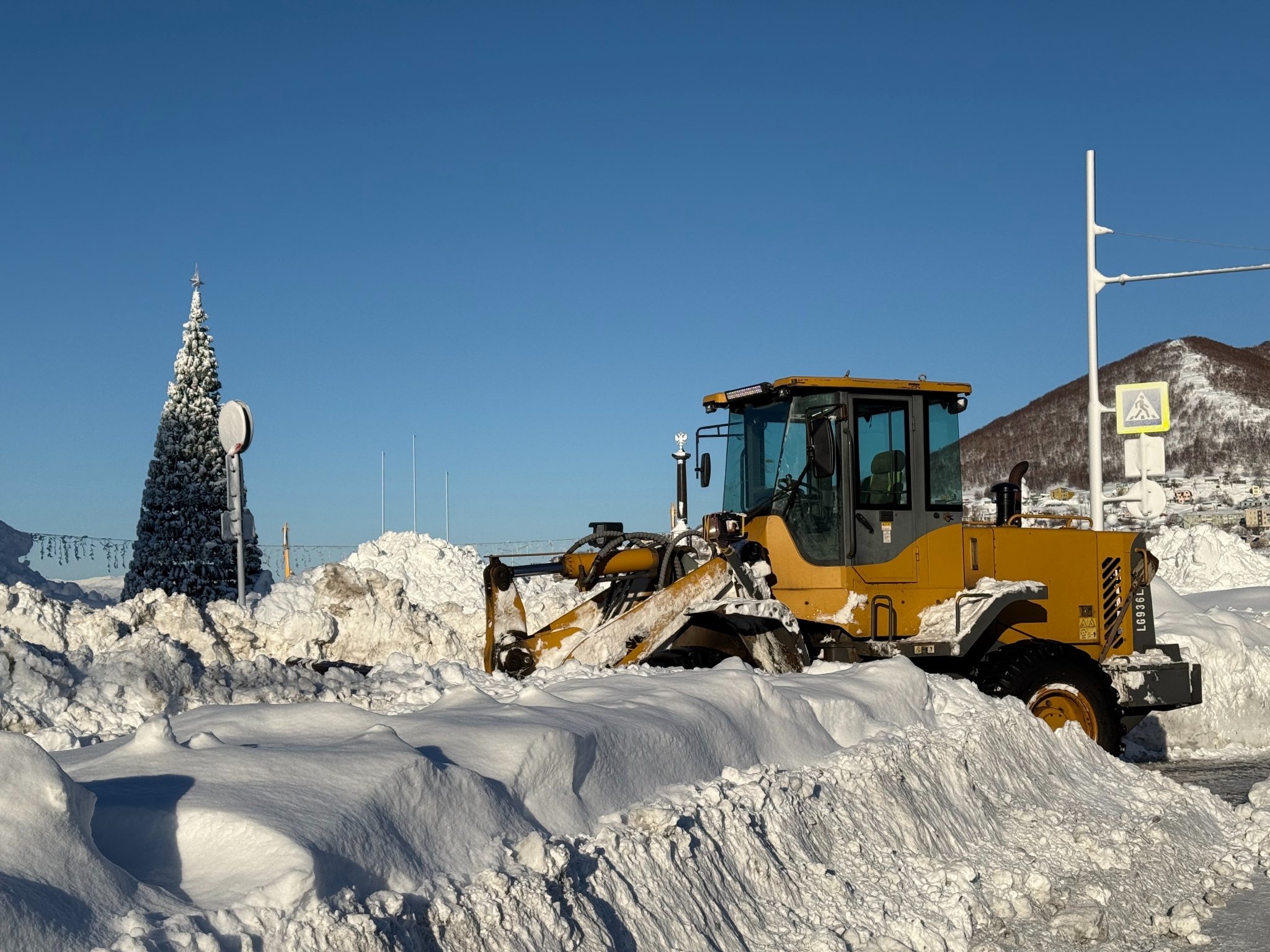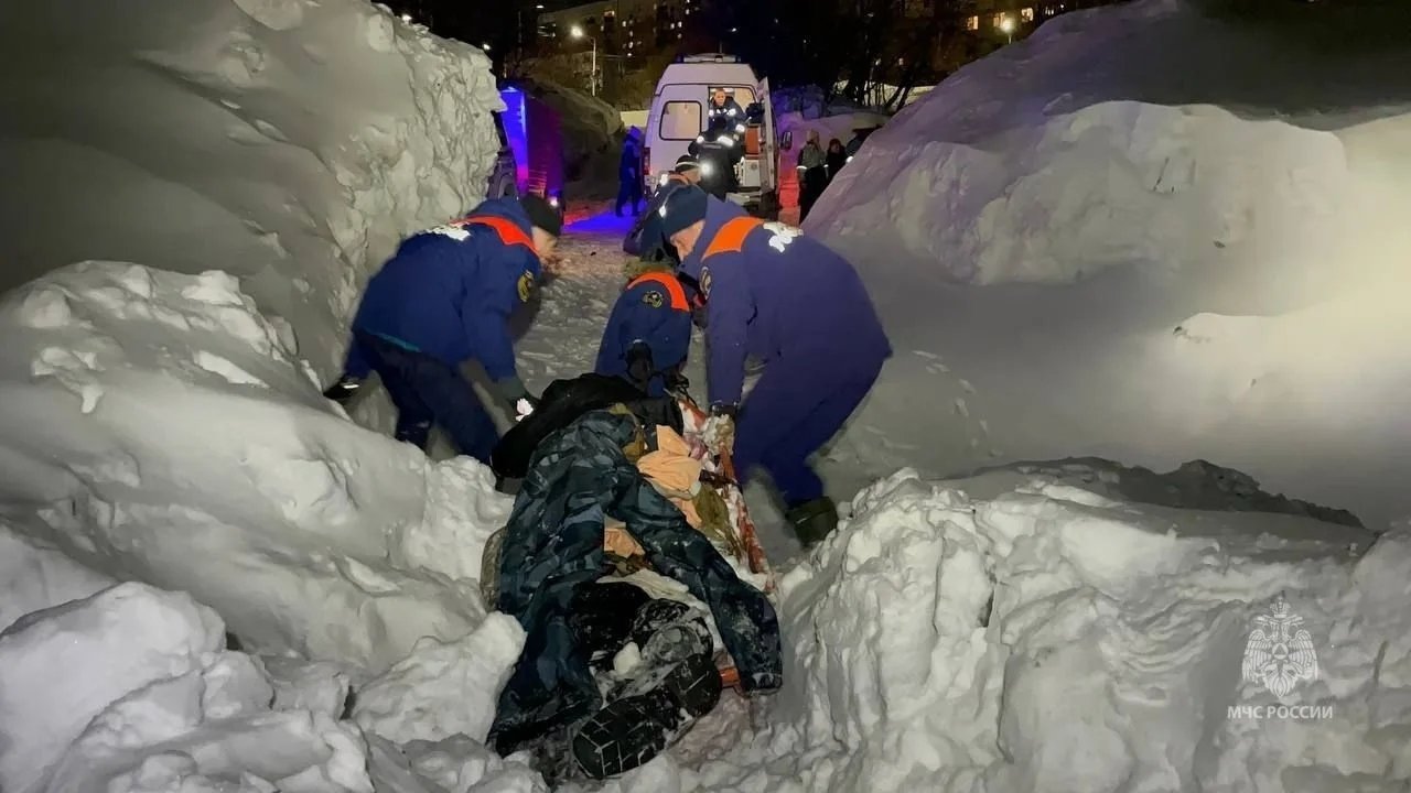 Обычный двор в Петропавловске-Камчатском. Последний раз снег убирали в середине декабря. После всех циклонов проезд полностью заблокирован уже две недели. Невозможно вывезти мусор, проехать пожарным и скорой, подвести товары в окрестные магазины. Попытка погрузчика пробиться в соседний двор закончилась крахом — спецтехника чуть не свалилась в яму со свежеоткопанным автомобилем, а потом превратила въезд в площадку для могула с трамплинами и ухабами.