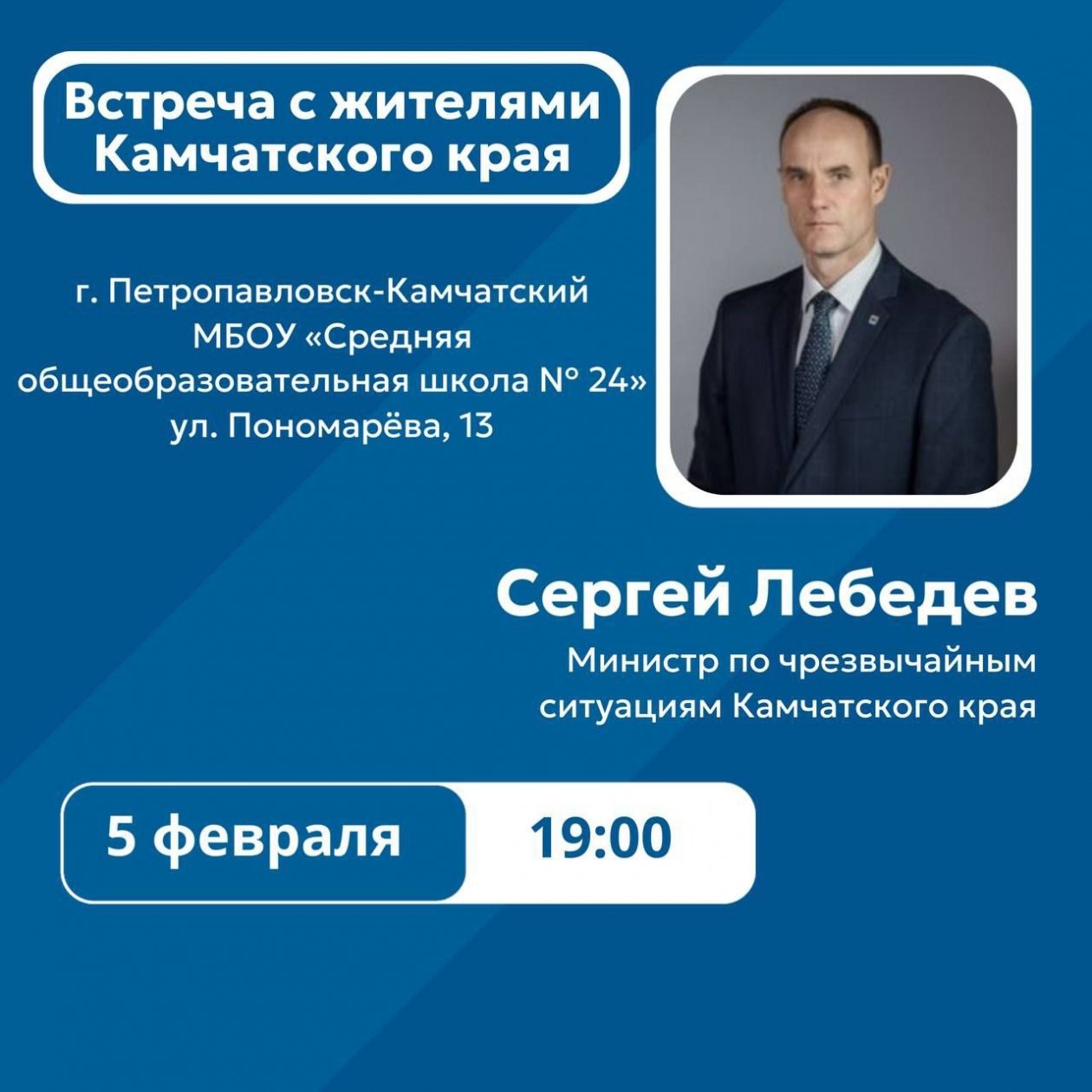5 февраля в 19 часов в школе № 24 (Пономарёва, 13) пройдет встреча с министром по ЧС Камчатского края Сергеем Лебедевым.