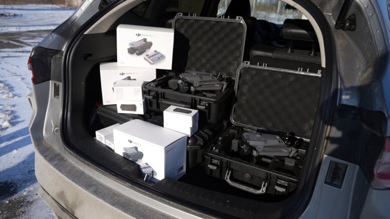 В состав новой партии груза для 164-й бригады вошли 14 дронов DJI, аккумуляторы, генераторы резервного питания, а также квадроцикл