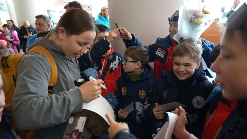 Камчатские болельщики встречают Юлию Плешкову в аэропорту. Фото: kamgov.ru