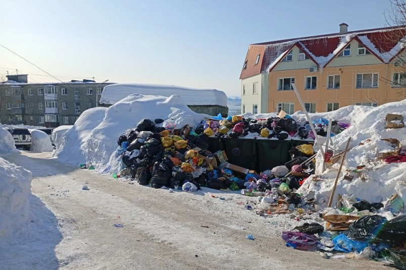 KamchatkaMedia, 17 февраля. Жители дома по улице Арсеньева, 4а, кажется, живут на свалке. Всё дело в мусорной горе на контейнерной площадке перед их домом. Отходы оттуда не вывозятся уже несколько недель.