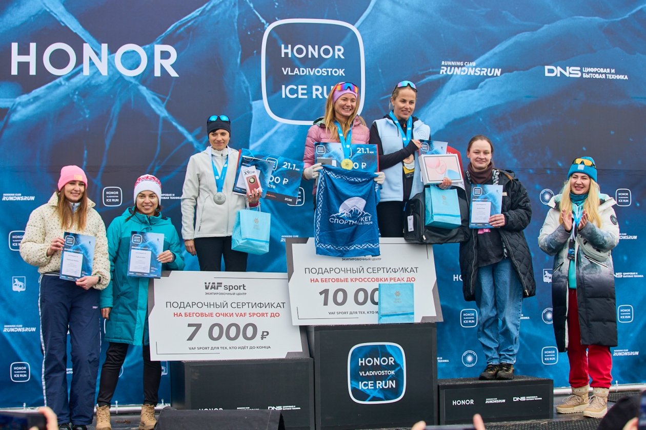 После финального подсчета результатов судьями были определены победители 11-го Международного ледового полумарафона HONOR Vladivostok Ice Run. Под бурные овации им были вручены грамоты и призы. Абсолютные победители получили флагманские смартфоны серии HONOR Magic и другие устройства бренда HONOR. Призовой фонд полумарафона в этом году составил 500 тысяч рублей.