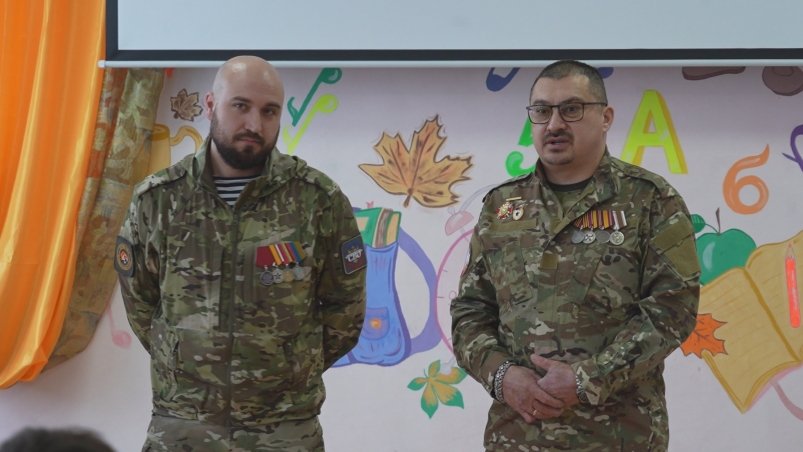 Один из заключительных Уроков мужества, приуроченных к Дню защитника Отечества, прошёл в школе № 35 Петропавловска-Камчатского. С ребятами старших классов пообщались ветеран спецоперации Александр Богданов и социальный координатор Фонда "Защитники Отечества", заместитель исполнительного директора Ассоциации ветеранов специальной военной операции Евгений Брейкин.