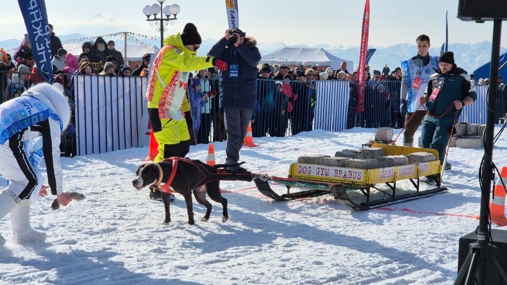 Вдоль дороги у стелы "Город воинской славы" можно было увидеть выставку специализированной техники и внедорожников (12+), понаблюдать за национальной борьбой на снегу (6+) и состязаниями по кинологическому спорту в дисциплине вейтпуллинг (тяжёлая атлетика для собак) (6+).