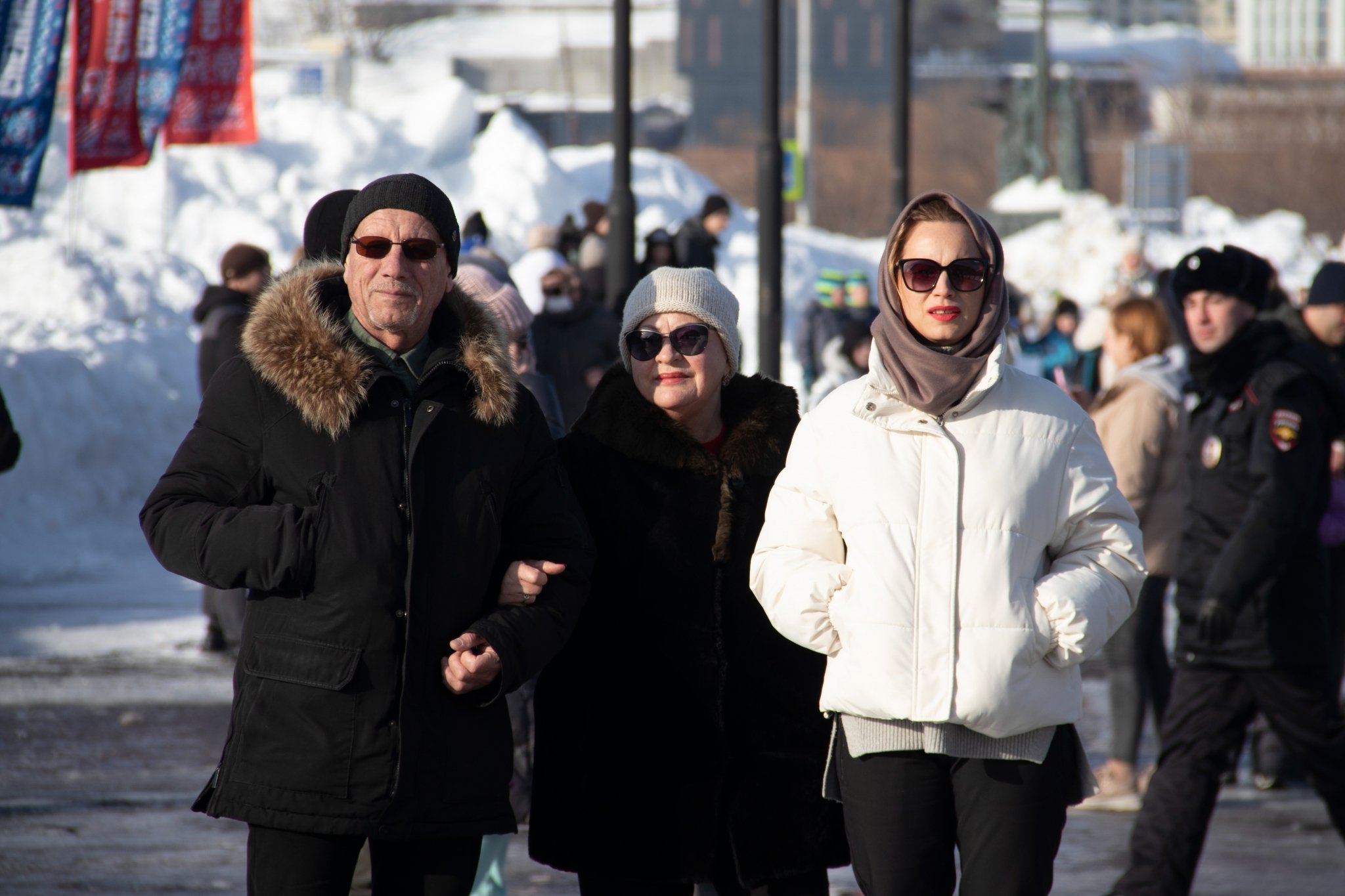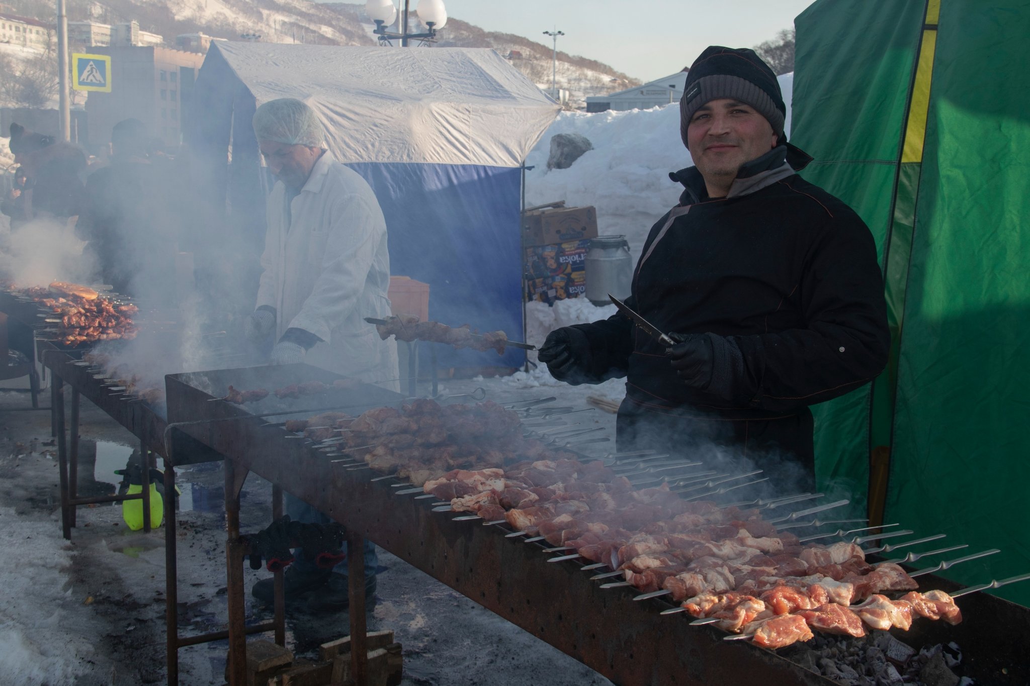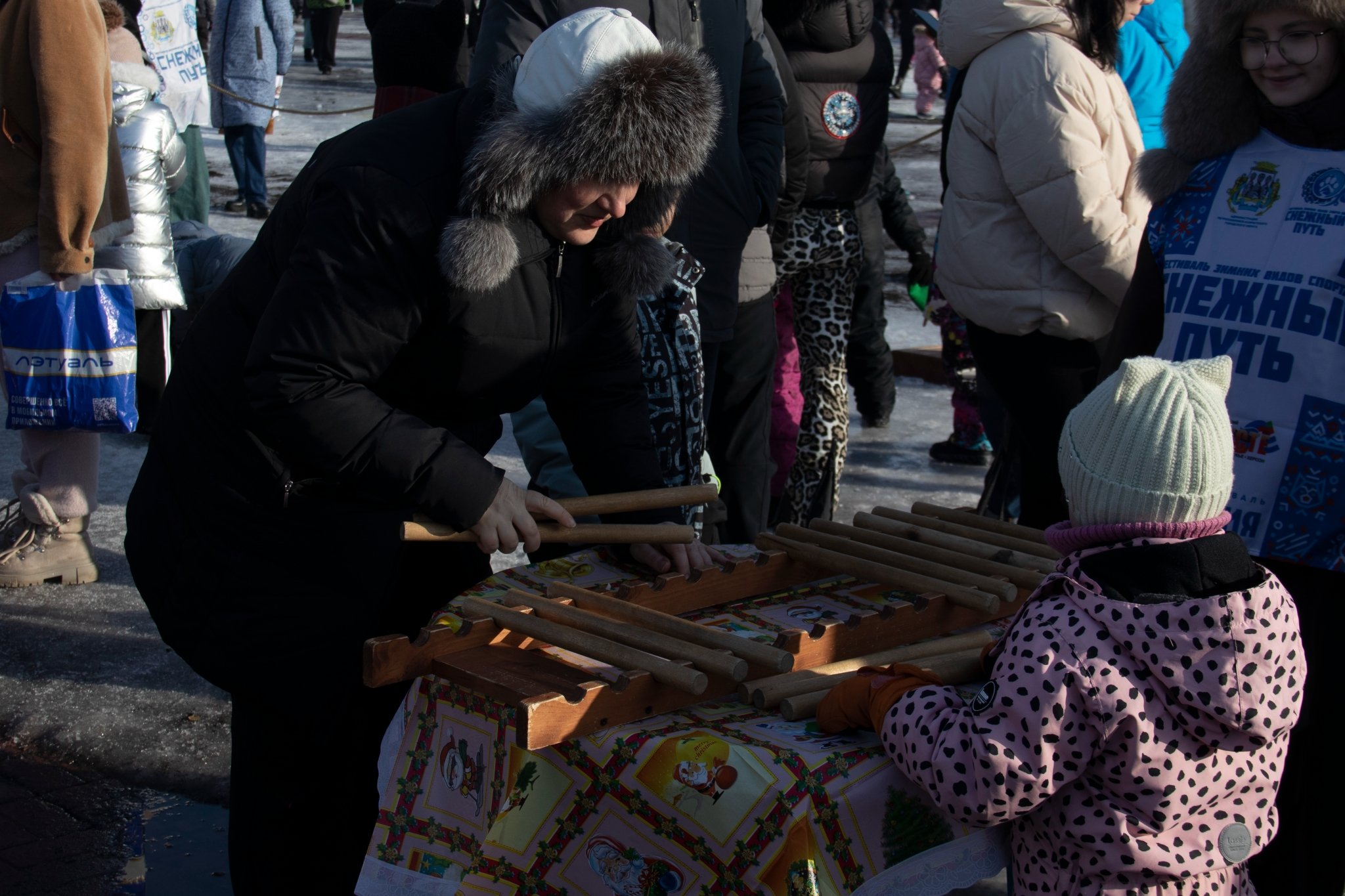 Не обошлось и без угощений. Попить чай, закусив блинами, отведать традиционных шашлыков, плова и безалкогольного глинтвейна смогли все, кого не напугали очереди на фудкорте. И, конечно, можно было отдохнуть перед началом короткой рабочей недели и порадоваться солнечному зимнему дню.