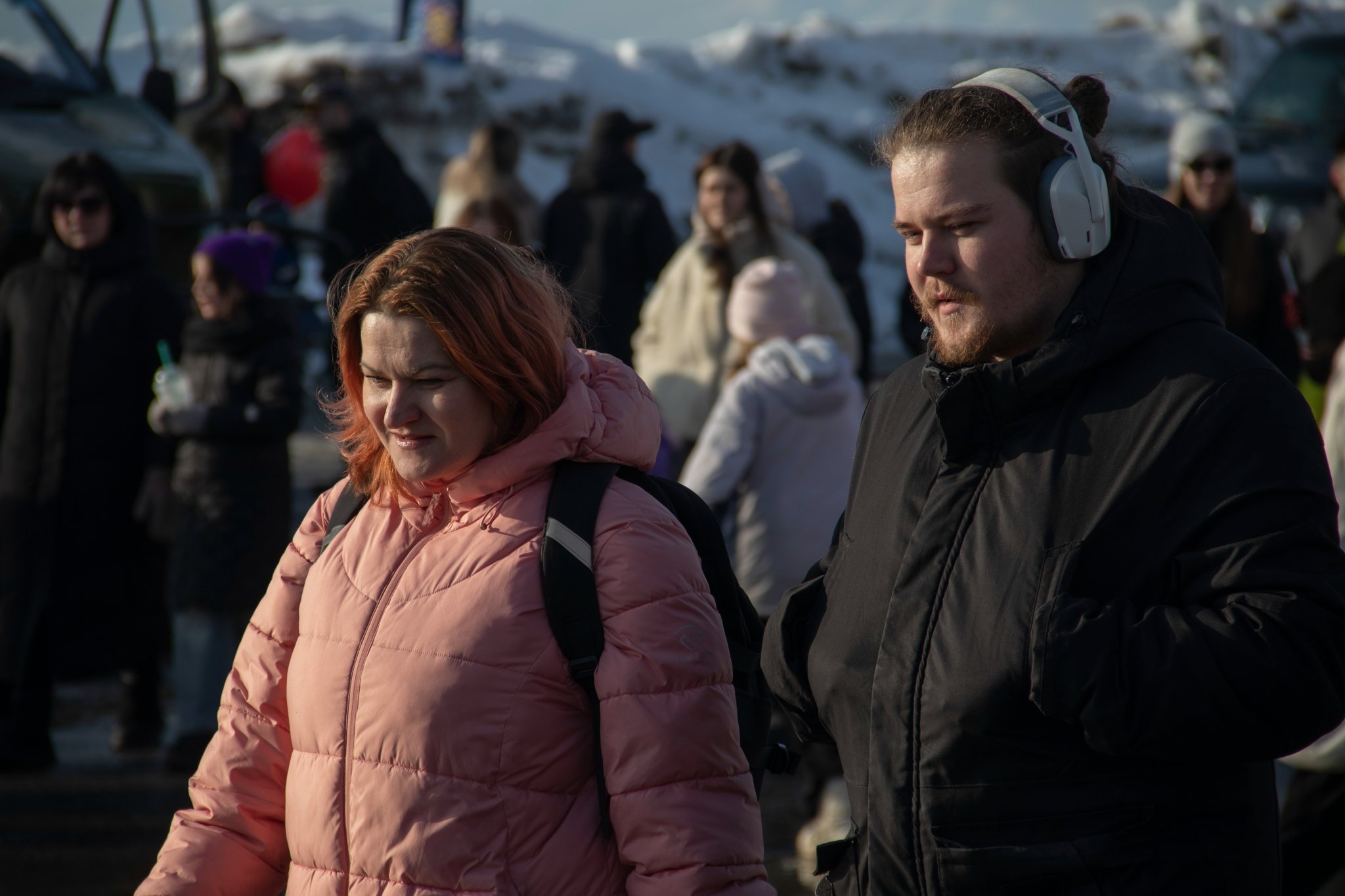 Вдоль дороги у стелы "Город воинской славы" можно было увидеть выставку специализированной техники и внедорожников (12+), понаблюдать за национальной борьбой на снегу (6+) и состязаниями по кинологическому спорту в дисциплине вейтпуллинг (тяжёлая атлетика для собак) (6+).