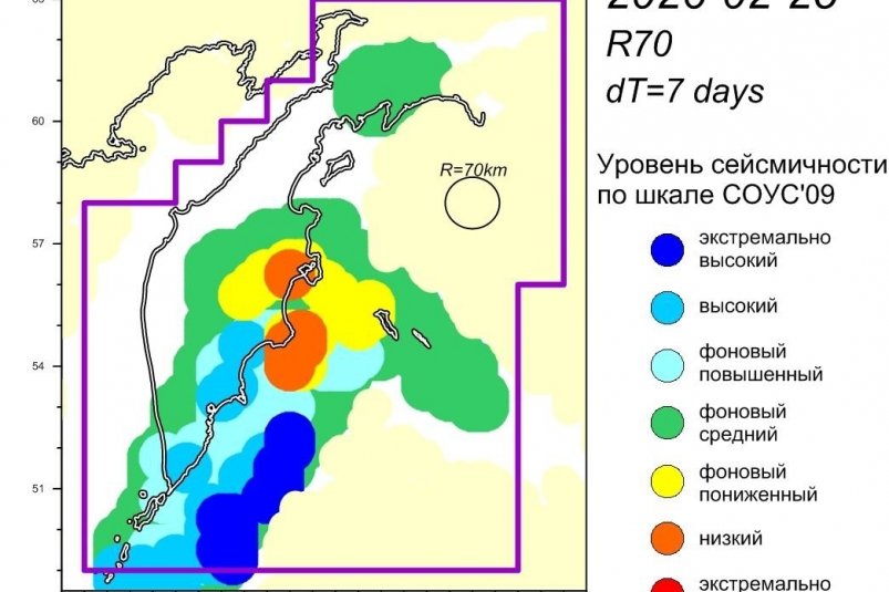 Уровень сейсмичности Камчатского участка зоны субдукции (по состоянию на 26 февраля 2026 г.) — фоновый повышенный по шкале СОУС"09. Уровень немного снизился, неделей ранее он определялся как высокий.