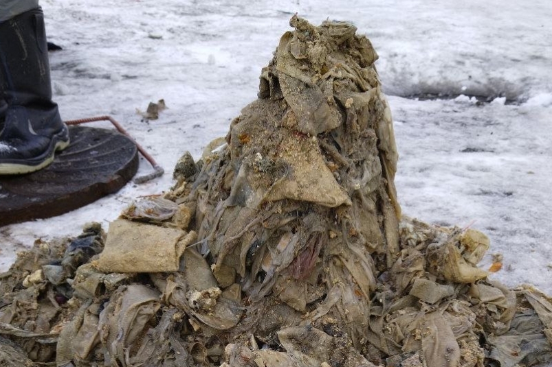 "Рекламные ролики убеждают, что влажные салфетки легко растворяются в воде. Однако на деле, попадая в систему водоотведения, они переплетаются между собой, образуя плотный комок, способный вызвать серьезный засор и полностью парализовать движение хозяйственно-бытовых стоков по канализационным трубам",