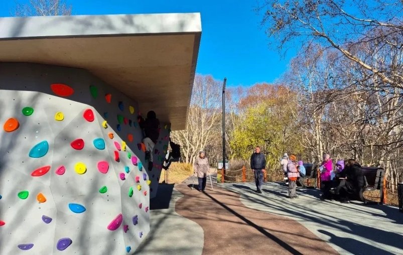 Парк благоустроила компания "Ареал" (бывшая "Хайлэнд Голд") между микрорайонами "Дачная" и "Нижний Горизонт". Уже открыты освещённая тропа, смотровая площадка и скалодром. В этом году работы продолжатся.