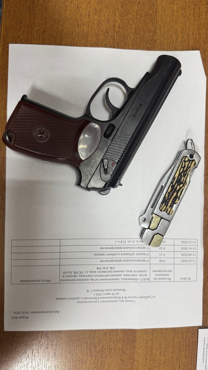 KamchatkaMedia, 1 апреля. Судебные приставы в Петропавловске-Камчатском при входе в участок мирового суда на улице Зеркальной нашли у 39-летнего посетителя пневматический пистолет, внешне полностью имитирующий пистолет Макарова, и складной нож.