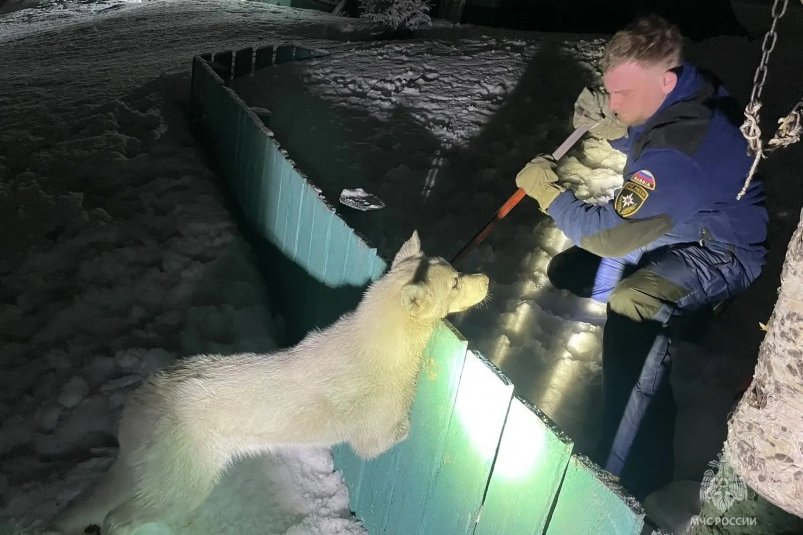 Участники спасоперации отметили: "Бездомный пёс не сопротивлялся — он ждал помощи". Забор в результате действий сотрудников МЧС России не повреждён.