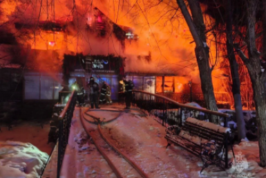Недалеко от Елизова на Камчатке горит двухэтажное кафе