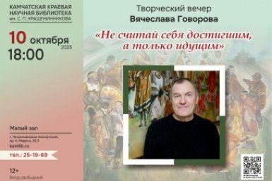В Камчатской краевой библиотеке состоится юбилейный вечер Вячеслава Говорова Автор, исполнитель, поэт и художник встретится со всеми желающими в малом зале вечером 10 октября 10 октября, 14:46
