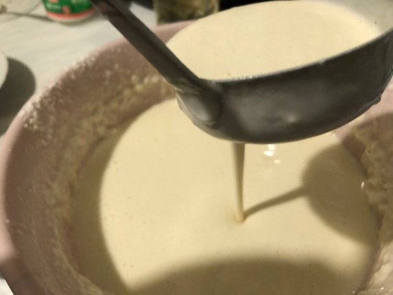 Хочется отметить, что изначально может показаться, что блинная масса очень жидкая. Однако, начав печь блины, можно заметить — консистенция самая подходящая.