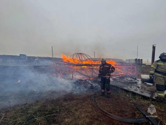 К сожалению, гостевой домик "Ковчег", расположенный в шатре-палатке на 8 челоовек, к моменту прибытия пожарных подразделений практически полностью сгорел.