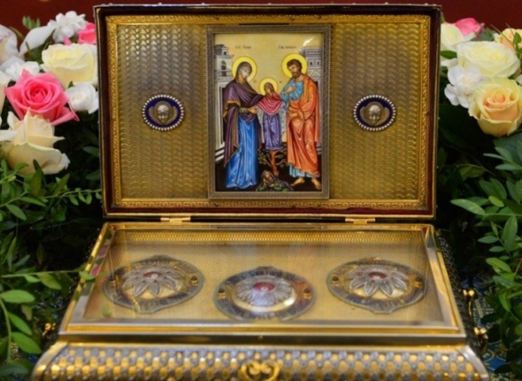 — Пояс Пресвятой Богородицы — одна из величайших святынь, связанных с жизнью Пречистой Девы. По преданию Она Сама сплела его из верблюжьей шерсти и носила вплоть до Своего Успения. В 2011 году к 200-летию Казанского кафедрального собора частица Пояса была передана на вечное хранение в Санкт-Петербург, куда ежедневно стекаются сотни паломников для того, чтобы помолиться Божией Матери перед великой святыней. Особую надежду на помощь Богоматери возлагают православные семьи, не имеющие детей. Ей молятся о семейном благополучии, о мире в нашем Отечестве, о помощи нашим воинам,