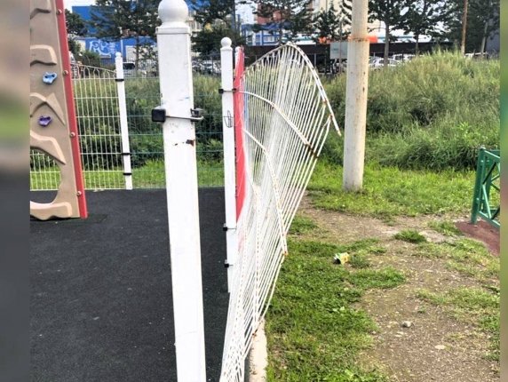 Проверка показала, что Служба благоустройства городского округа плохо содержала площадку. С одного из элементов были сняты пластмассовые кольца, а металлические крепления остались без защиты. Кроме того, забор вокруг площадки сильно повреждён — его острые края представляли угрозу и для детей, и для взрослых.