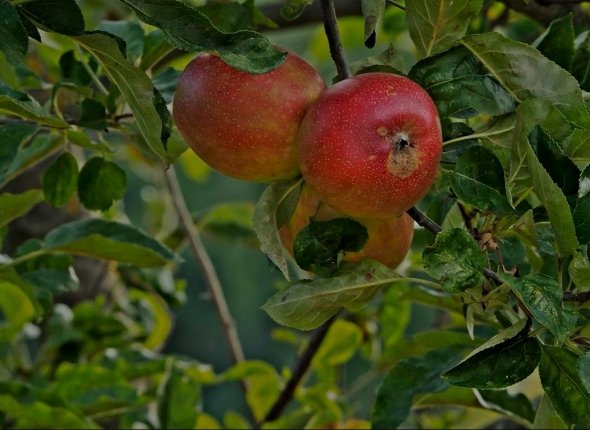 Кора чистая и здоровая, а урожай настолько обильный, что веткам требуется подпорка.