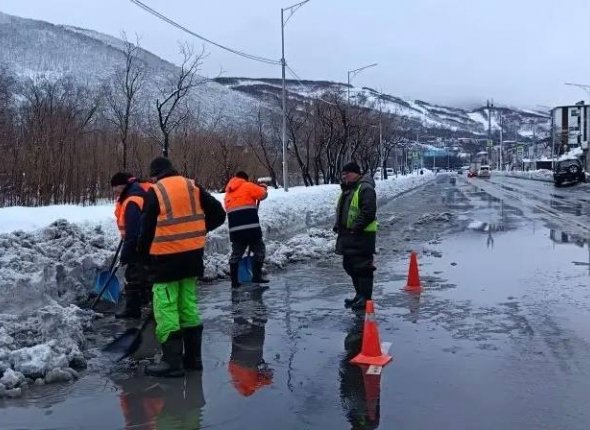 В столице Камчатки дорожники занимаются отводом воды с проезжей части