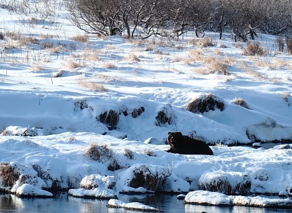 KamchatkaMedia, 14 декабря. Вчера, 13 декабря, отметили День медведя. Считается, что именно к этой дате все косолапые уходят зимовать в свои берлоги. На Камчатке большинство бурых медведей "чтут традиции" — они залегли в спячку. Однако около 10% всё ещё бодрствуют. Их удерживает тёплая погода, циклоны и обилие пищи — в первую очередь лосося. В частности, в Кроноцком заповеднике и Южно-Камчатском заказнике инспекторы насчитали более 10 неспящих топтыгиных, которые продолжают кормиться на нерестилищах кижуча и у Курильского озера, где нерка нерестится даже подо льдом до конца зимы, сообщили ИА KamchatkaMedia в пресс-службе заповедника.