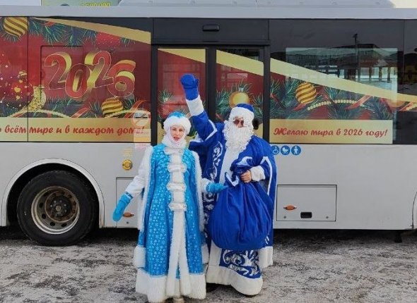 "В брендированных автобусах городского Автопарка пассажиров будут встречать Дед Мороз и Снегурочка. Волшебные гости подготовили для пассажиров творческие номера. Для каждого из них приготовлено поздравление и сувенир", — рассказали в Управлении культуры, спорта и молодежной политики администрации города.
