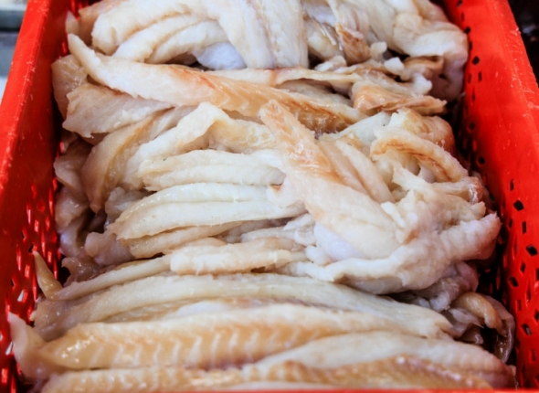 К текущему моменту объем выпуска минтаевых филе, фарша, сурими в море и на береговых заводах оценивается экспертами Ассоциации судовладельцев рыбопромыслового флота (АСРФ) на уровне 215 тысяч тонн (193,7 тысячи тонн выпущено непосредственно на борту промысловых судов на 25 декабря). На их производство направлено около 790 тысяч тонн сырья при объеме вылова 2,1 млн тонн.