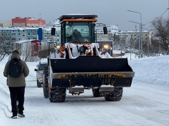 Прибывшая ночью техника уже работает на дорогах Петропавловска-Камчатского. Сразу после прибытия погрузчик был направлен на расчистку улицы Советской.