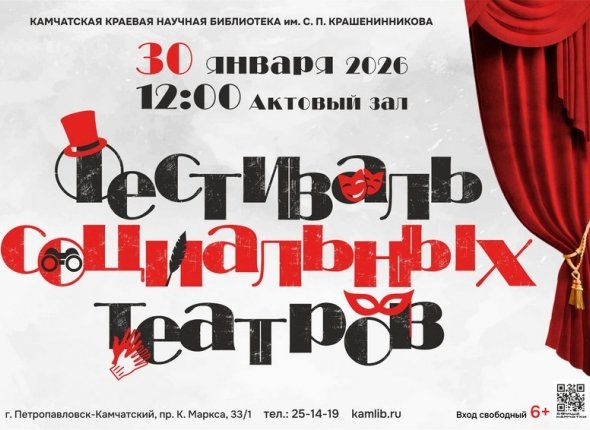 KamchatkaMedia, 27 января. Фестиваль социальных театров (6+) пройдет 30 января в краевой библиотеке им. С. П. Крашенинникова в столице Камчатки, сообщили в оргкомитете.