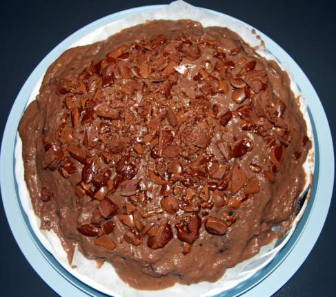 5. Оставшийся шоколад растопите короткими импульсами в микроволновке. Добавьте растительное масло, и глазурь станет более текучей. Полейте торт, украсьте арахисом, печеньем или шоколадной крошкой. Когда глазурь застынет, торт легко вынется из формы и будет хорошо держать нарезку.