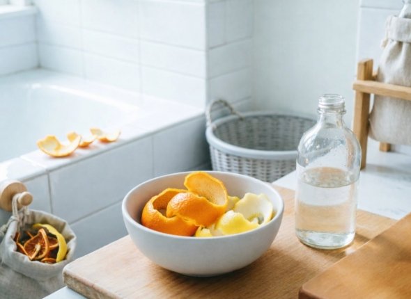 Сложите корки от 4-5 цитрусовых в банку, залейте смесью воды и уксуса в пропорции 1:1 и настаивайте неделю в темном месте. Получится мощный антибактериальный раствор, который справляется с плесенью, жировым налетом и разводами на любых поверхностях. Перелейте жидкость в бутылку с распылителем — и у вас есть универсальное средство для уборки с приятным цитрусовым ароматом вместо едкого запаха химии.