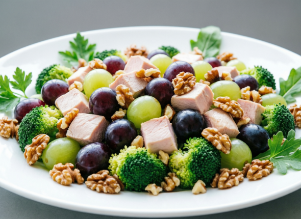 KamchatkaMedia, 26 февраля. В наши дни уже мало кто готовит к празднику майонезные жирные салаты. Теперь в тренде — красивые ресторанные блюда с необычным и полезным составом. Если и у вас намечается застолье и вы думаете, чем бы удивить гостей, то предлагаем подать салат с брокколи и курицей, который стал популярным по всему интернету в этом году.