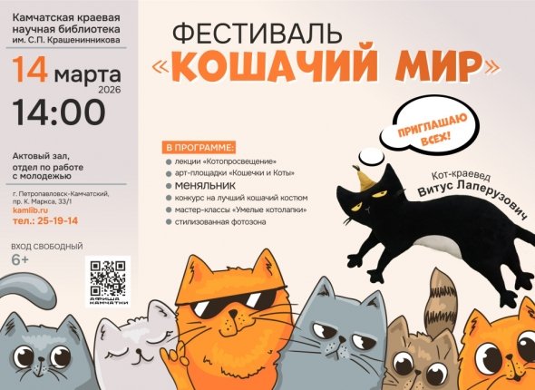 KamchatkaMedia, 10 марта. Фестиваль "Кошачий мир" (6+) пройдет в Петропавловске-Камчатском в Камчатской краевой библиотеке. Организаторы обещают, что событие объединит сразу несколько направлений искусства.