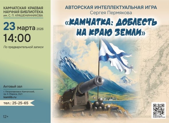 23 марта в Камчатской краевой научной библиотеке имени С.П. Крашенинникова пройдёт первая авторская интеллектуальная игра (12+), посвящённая Камчатке. Её создал Сергей Пермяков, автор книги "Камчатка: Доблесть на краю земли" (12+), сообщили организаторы.