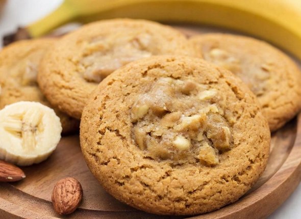 Нарежьте банан на кусочки толщиной примерно 3 см, выложите на противень, застеленный пергаментом, и придавите каждый кусочек стаканом, чтобы получились плоские изделия. Сверху посыпьте по 1 ч. л. ореховой смеси и тоже слега придавите. Выпекайте в духовке, разогретой до 180 градусов, около 20 минут.