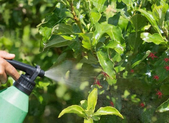 Готовое средство процедите через 2 слоя марли и разведите настой водой в пропорции 1 к 3. Перелейте раствор в опрыскиватель и обработайте весь участок.