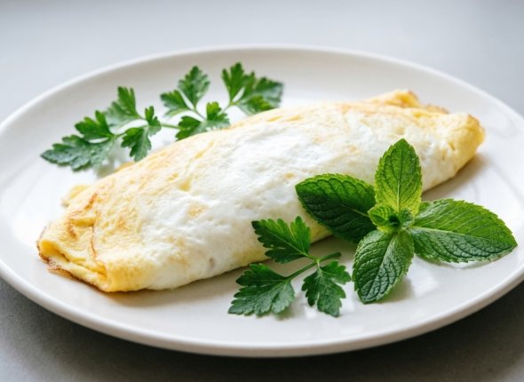 Извлеките мешочек, развяжите узел и вывалите омлет на тарелку. К пакету он не прилипнет — выйдет ровным "блином". Красивый, нежный, воздушный, ни одного подгоревшего участка! И все это без капли масла, а значит завтрак получится не только вкусным, но и полезным. Подавайте омлет с сыром и зеленью — будет еще вкуснее. Приятного аппетита!