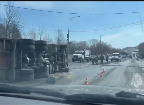 Сегодня днём, 18 апреля, на улице Пограничной в Петропавловске‑Камчатском перевернулся "КамАЗ".