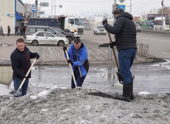 "В связи с большим количеством снега на городских территориях в первую очередь все, кто вышел на субботники, разбивают снежные массы и ворошат снег, чтобы он быстрее таял. Одновременно с этим собирается вытаявший мусор на пешеходных зонах, общественных пространствах", — рассказали в Службе благоустройства города.