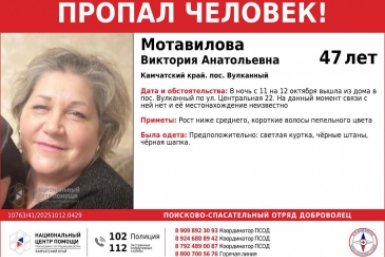 Пропавшую ночью в окрестностях поселка Вулканный женщину ищут на Камчатке