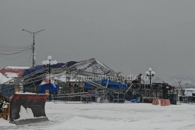 Ветер разрушил сцену фестиваля "Снежный путь" в центре столицы Камчатки